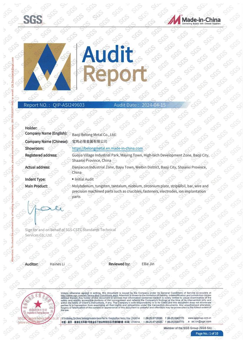 Baoji Belong Metal Co. , Ltd. is located in Baoji, Shaanxi, which is known as the "Titanium Valley" of China.